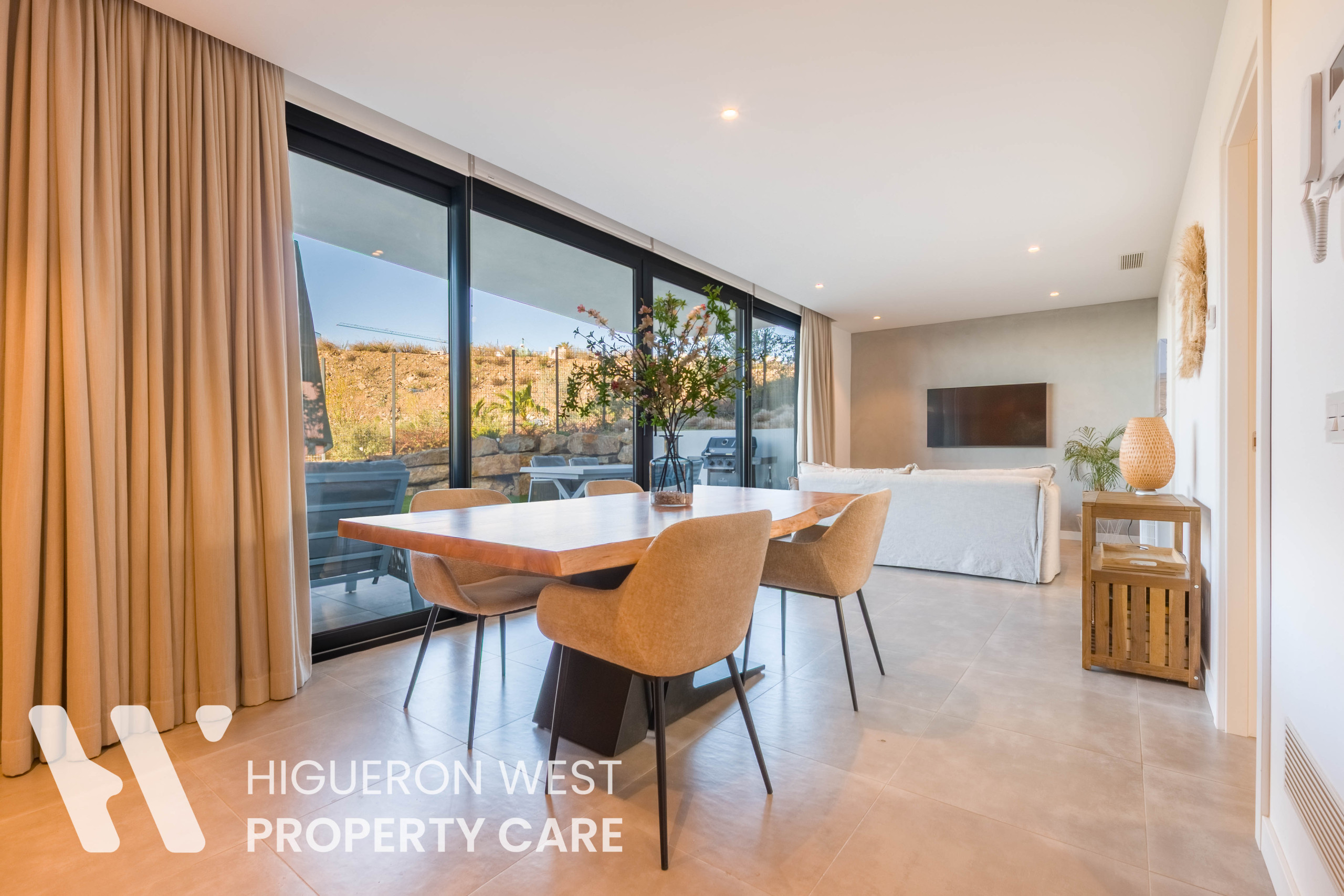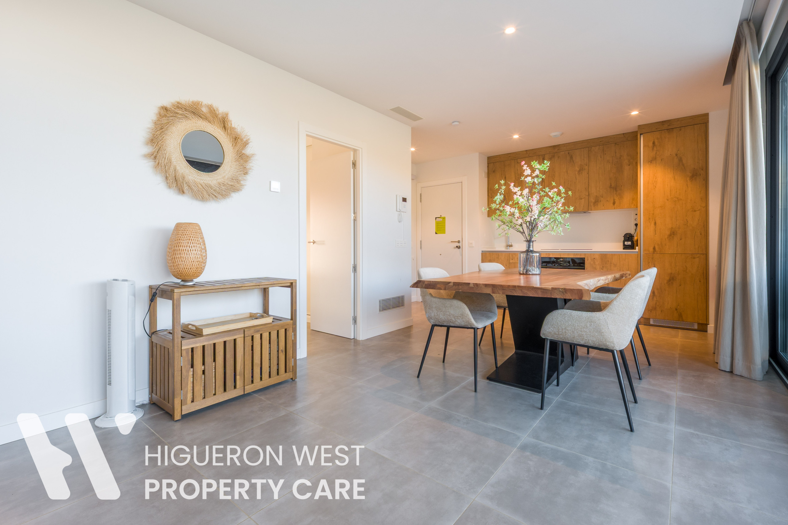 Welcome to your serene retreat on the Costa del Sol! This brand-new, south-facing second-floor apartment in the exclusive Higuerón West community offers modern comforts, stylish living, and a tranquil setting perfect for families or small groups. With 67 m² of thoughtfully designed interiors and a private terrace overlooking lush gardens and the communal pool, this two-bedroom apartment comfortably accommodates up to four guests.
