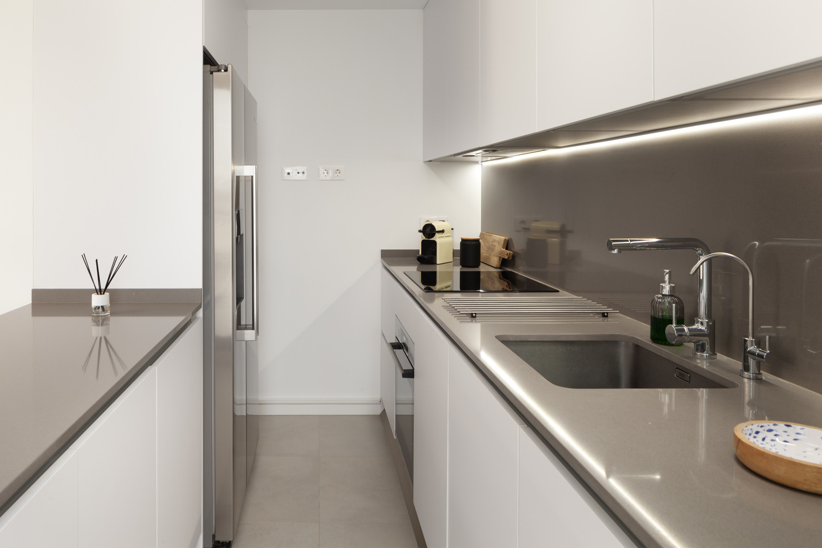 Guests can enjoy access to a beautiful communal pool and a private parking space in the building’s garage. Wi-Fi is included, along with all essentials for a relaxing stay — washing machine, dishwasher, air conditioning, and more.